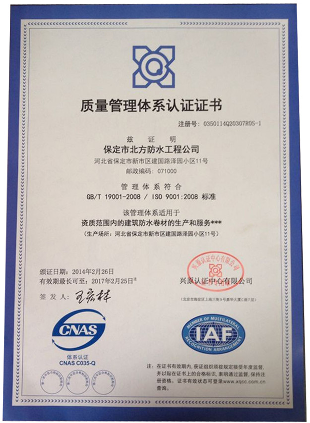 環(huán)渤海地區(qū)防水行業(yè)誠信企業(yè)